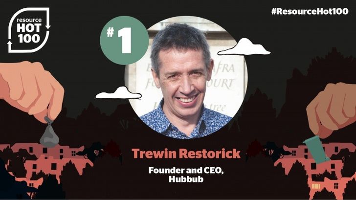 Trewin Restorick, Founder and CEO of Hubbub, has been voted winner of the 2022 Resource Hot 100, our annual poll of the recycling industry’s great and good, as decided by the sector itself. Thank you to everyone who took part.